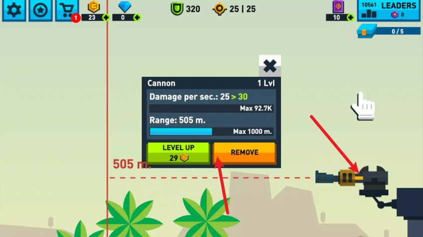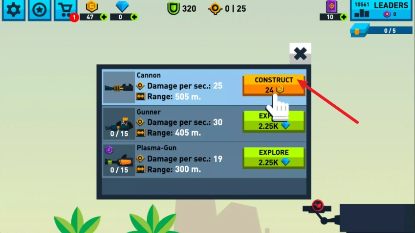 1、开始游戏后,选中空位后点击武器开始建造。