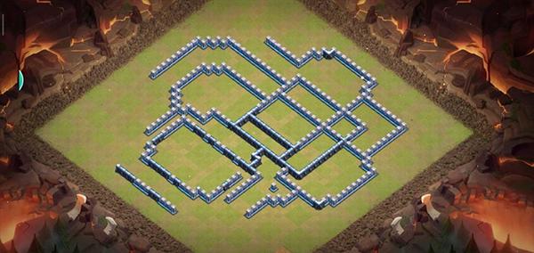 阵型解析:这是一个防雪崩,天雪蓝的阵型,能够有效坑杀天女滑步,多格子城墙阻拦大本偏置能够引导部队走偏,部分拐角处凹槽节点能够防止炸弹人对角开墙,对于天女前戏天永前戏都有不错的防御效果。