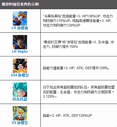 3、队伍三:LR悟吉塔4、LR神组合、LR超级悟吉塔、孙悟空GT、贝吉特蓝、神悟空