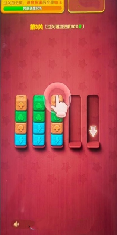 3、不断闯关闯关挑战,将更多的同色木块放置到一个槽子里面,最终通过关卡。