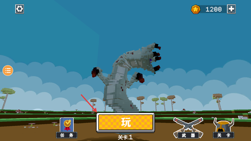 1、进入游戏主界面后,点击中间“玩”按钮,开启关卡1.直面巨型怪物,正式踏上冒险之旅。