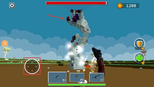 2、战斗中通过滑动左侧虚拟摇杆控制角色移动,瞄准怪物进行猛烈攻击,合理切换武器以持续输出伤害。
