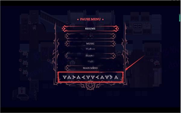2、按ESC键,你可以看到隐藏的箭头密码在菜单的底部。密码为下,上,右,上,左,下,下,左,上,下,右,上。站在地毯的中心,输入密码,这样我们就可以看到下图这个门。
