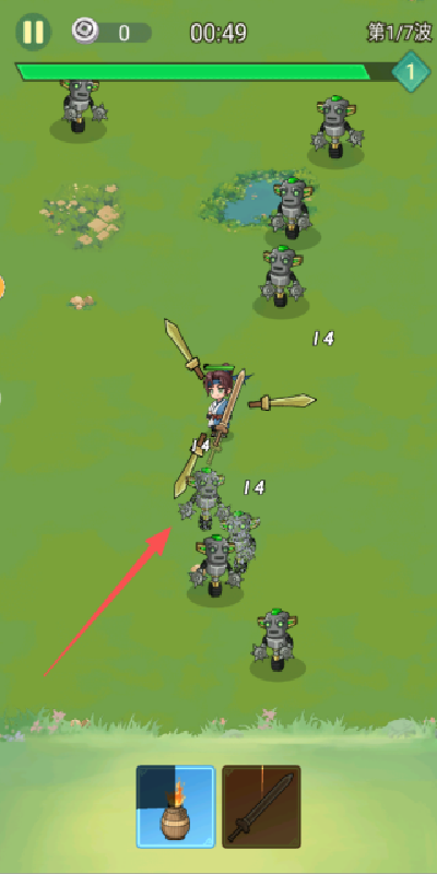 4、另外我们可以时刻在上方去查看我们当前的战斗的进度的,以及抵御的波次的。