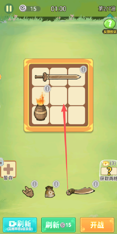 3、需要将我们获取到的武器放入到格子中,这样才可以在战斗的时候释放技能的。