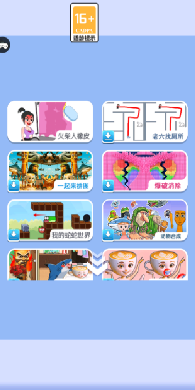 1、进入游戏后,你可以看到很多玩法,有火柴人橡皮、老六找厕所等。