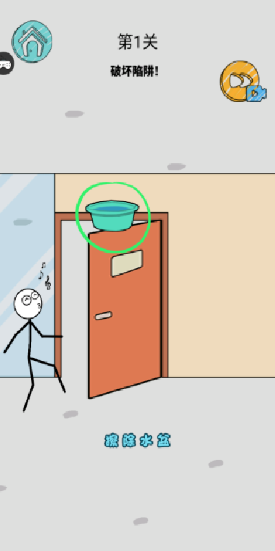 2、我选的是老六找厕所,第一关你要破坏陷进,利用橡皮擦擦除水盆。