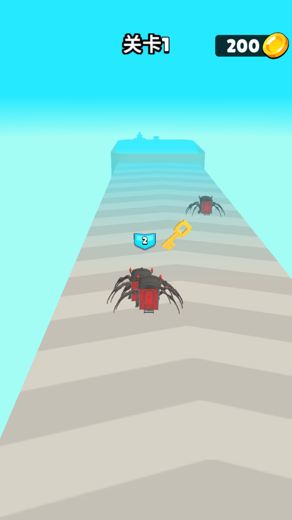 1、操控着你的蜘蛛一路闯关,获得钥匙,避开其他的陷进和难关,成功到达终点。