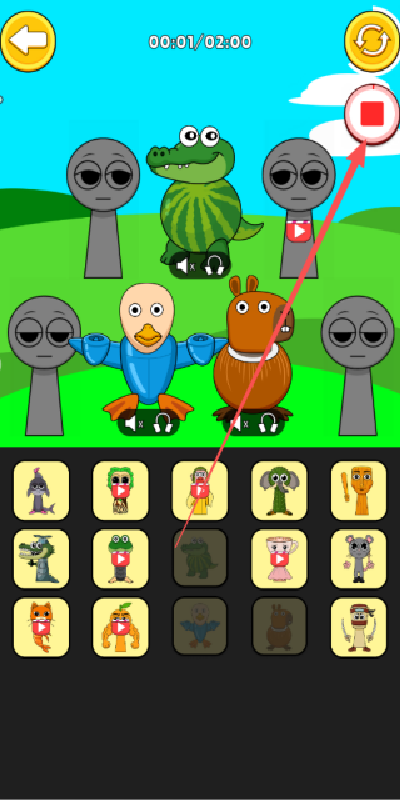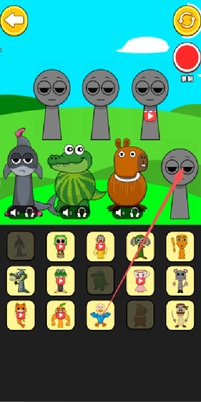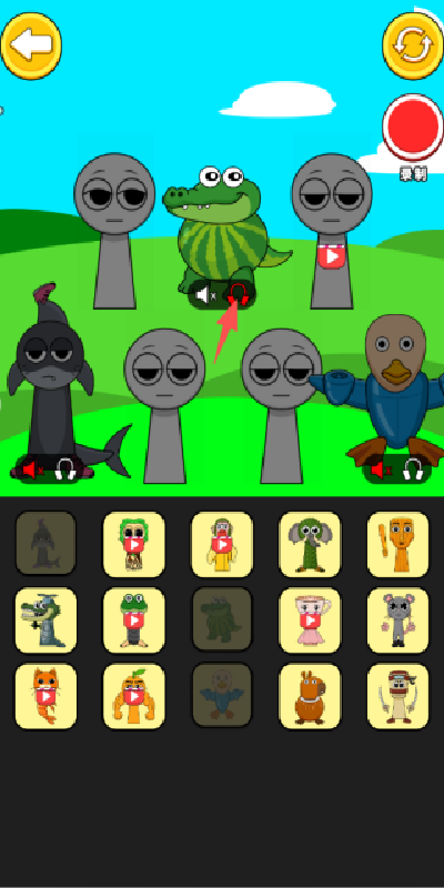 2、选好了山海经怪物之后,你就可以为它们搭配上不同的音符,点击开关和喇叭。