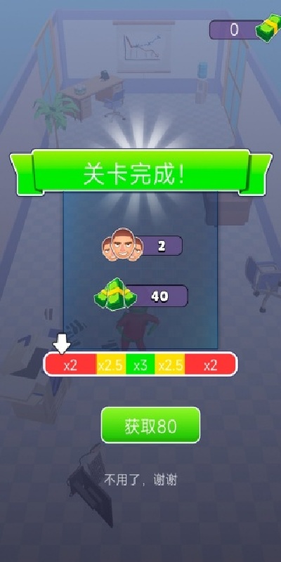 3、当你将所有的敌人都击杀了之后,就算是完成了闯关,获得80个金币。