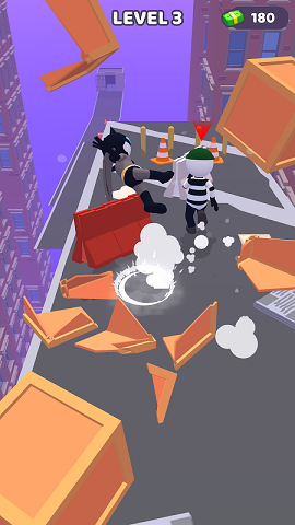 卡通人物的动作行云流水,而且小偷的动作也是跑的很快,你要努力躲避障碍物哦!