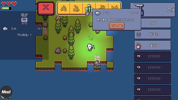 3、然后通过菜单栏-工业这里来建设熔炉。