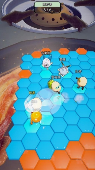1、核心是在动态煎锅舞台上进行多人乱斗,通过碰撞将其他蛋仔击飞出台面即可获胜。