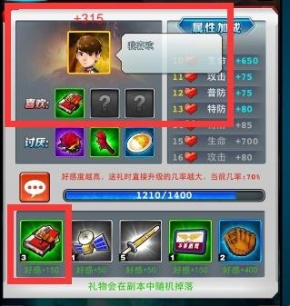 4、游戏中比较有特色的地方是玩家可以在【人间体】界面给人间体送礼物,当人间体得到自己喜欢的礼物后会提高好感度,好感度越高,增加的属性也越多,这些礼物都可以在商店购买或者副本掉落获得。相反,当人间体收到自己不喜欢的礼物时,可是会扣除好感度的哦。