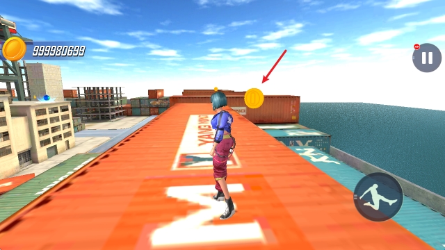 4、我们可以跳跃到各种建筑顶上拾取金币。