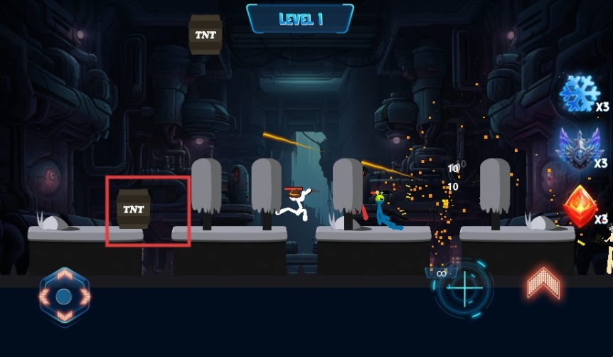 3、注意躲避【TNT】避免造成伤害,快速消灭敌人,推进关卡进程。