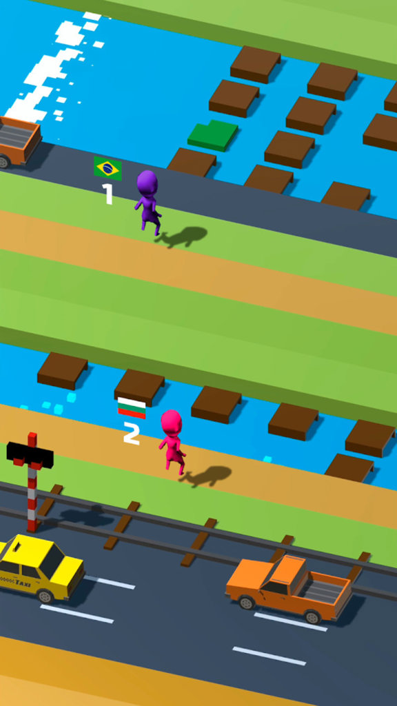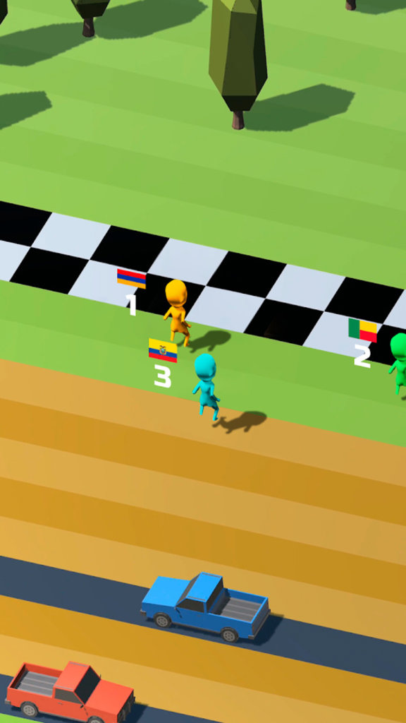 1、踏入游戏,置身拥挤赛道,周围全是移动的小人对手,赛道上障碍物林立,一场激烈较量就此展开。