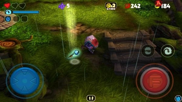 奇幻射击这款游戏的奇妙之处在于它的子弹是无限的,玩家可以在游戏开始之后就按住右下角的射击键不放,游戏可以自动对准怪物进行射击,玩家只需要左手控制方向即可。