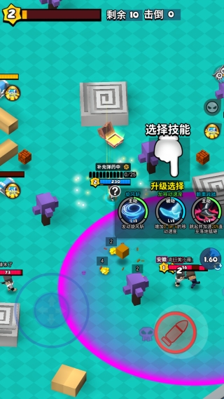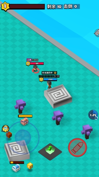 3、安全区不断缩小,控制角色不断进入安全区域展开作战,成功击败对手就能拾取对方携带的物资补充资源。