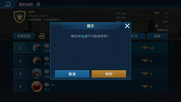 注:当指挥官升职某副指挥官后,会转让战队,变为副指挥官,请进行操作时慎重考虑。