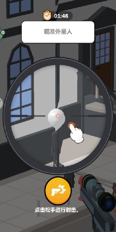 2、当你找到了隐藏的外星人之后,就要快速瞄准,然后松手射击。