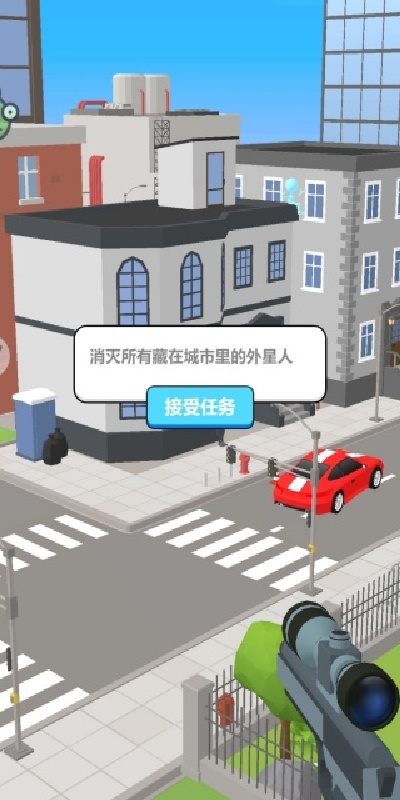 1、进入游戏后,你要接受任务,去消灭所有隐藏在城市里的外星人。