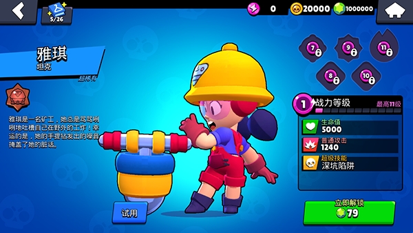 作为一款MOBA游戏,《荒野乱斗》还是很贴合MOBA的特点的。在英雄设计上,每个英雄的枪械大不相同,有散弹、“霰弹”雪莉、“双枪”柯尔特、“火箭筒”布洛克等等数十个英雄,或肉,或辅助,定位各不相同。比如,“小脚印”妮塔就带着一只棕熊,能够追踪敌人,十分的有趣。英雄的获得,通过金币抽取。每次过关玩家可以获取金币用来抽取新的角色。