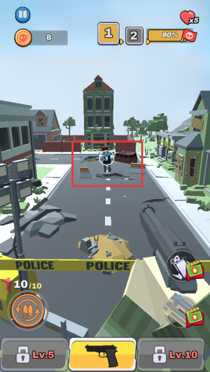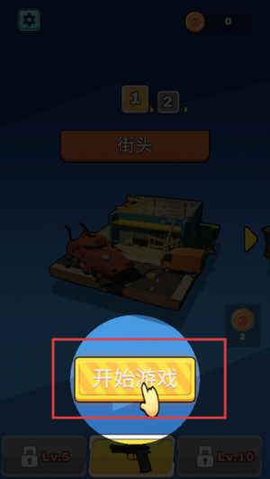1、点击主界面开始游戏按钮,进入街头废墟场景开启首个关卡挑战。