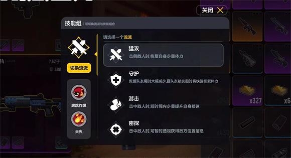 4、摸金模式里是有技能的,玩家需要根据自己的游戏风格来选择合适的技能流派,如果喜欢冲锋的可以选择猛攻流派,喜欢团队搭配的可以选择守护流派,喜欢单人游玩的可以选择游击流派。