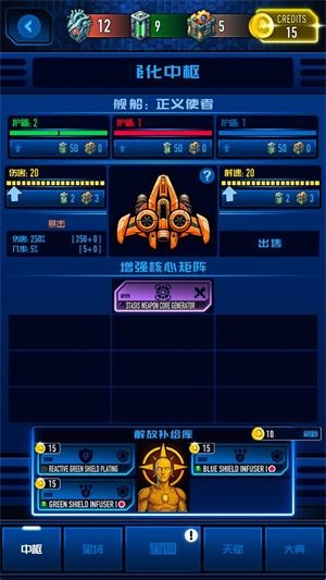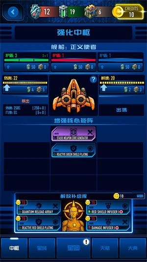 6、当你解放一个星球时会获得金币,金币可以在中枢里购买不同的模块来强化你的战舰。