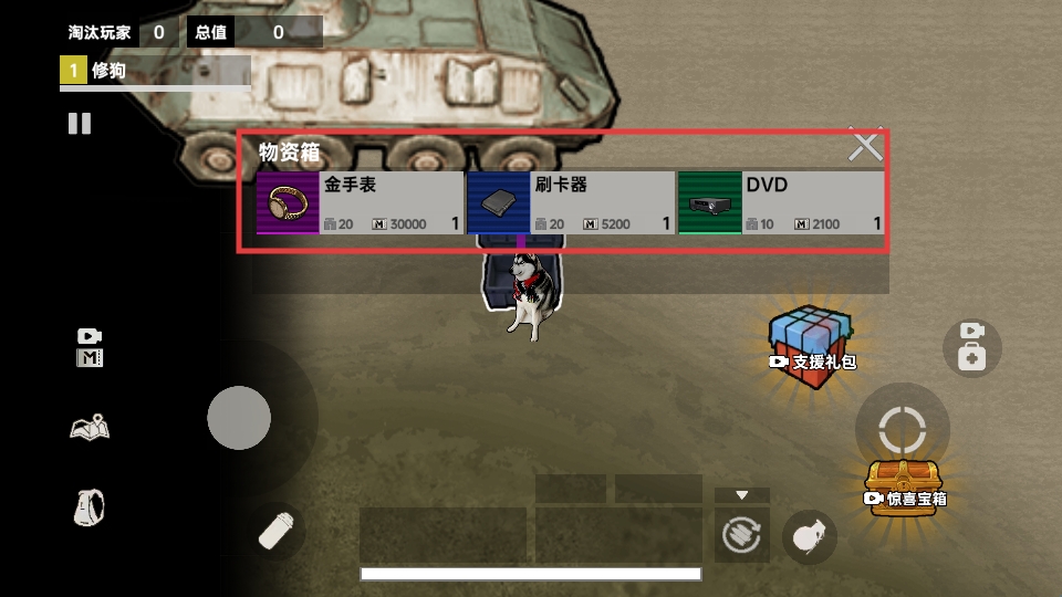 3、打开【物资箱】后会获得【金手表】【刷卡器】【DVD】等物品,【金手表】价值30000,【刷卡器】5200,【DVD】2100,收集它们能提高你的总值。