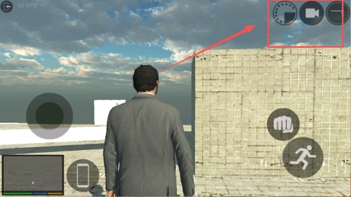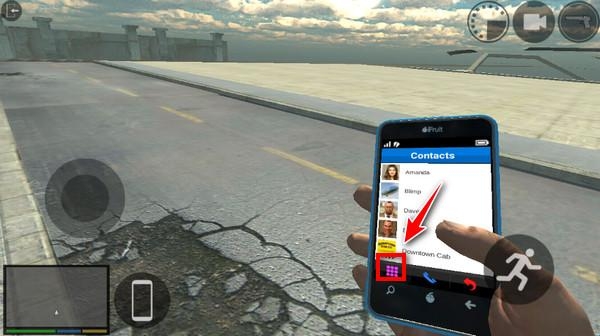 1、双击打开洛杉矶犯罪游戏,点击屏幕左下角地图旁边的手机图标,调出手机菜单;