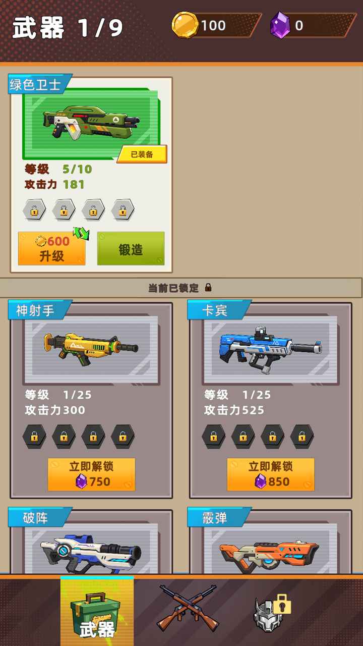 1、使用摇杆控制主角移动,主角会自动攻击附近的敌人,射击周围的敌人。