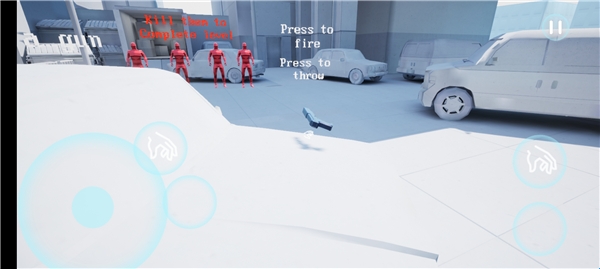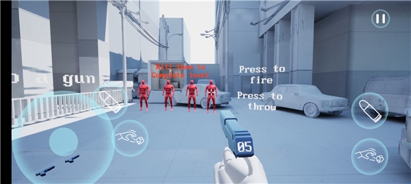 5、。。在手时,功能键就会变成射击键和投掷键;玩家可以通过十字架来瞄准敌人,然后点击子弹按钮,进行射击;