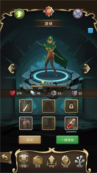 3、小队的闲置策略在大多数情况下,您需要派遣四名英雄同时作战,因此您不仅需要考虑英雄类别、携带的药水,还需要考虑如何安排英雄在地图中的位置,以领导战斗朝着你的计划方向前进。做好预先计划后,您只需要放松身心,观看英雄自动与不同地图中的怪物战斗。是的,这个游戏不需要你在战斗中做太多的操作,为英雄付出一切!