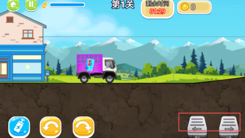 1、进入到关卡中,我们通过右侧的左右按钮,控制着车辆进行左右的移动的。