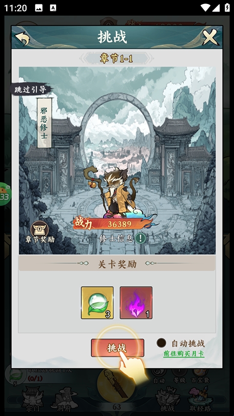 2、然后来到游戏首页,玩家只需要点击金箍棒来获取装备。