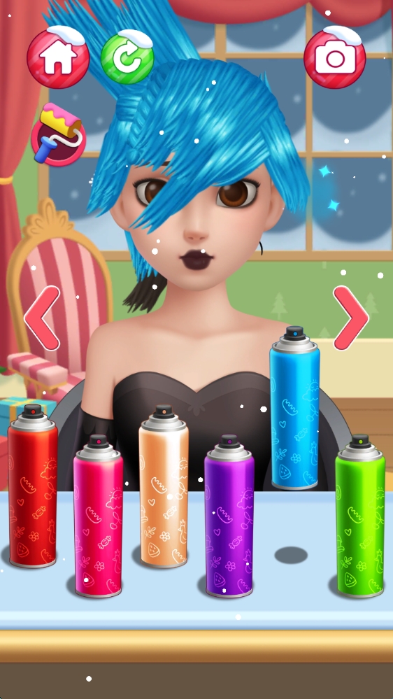 2、使用各种颜色的喷发物为不同的女孩们进行染发,有20种的颜色,任意的选择。