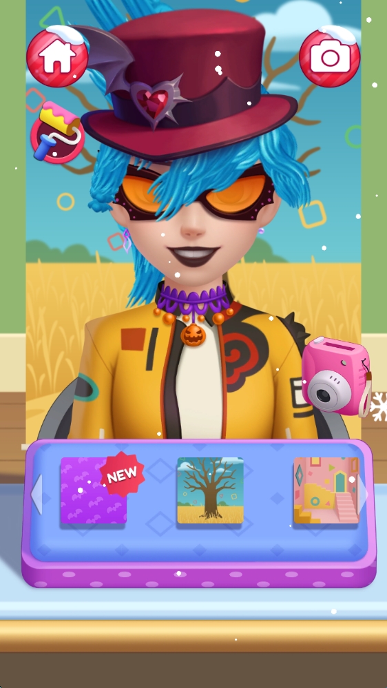 3、丰富的场景和背景图片可以自由更换,为你的角色打扮出美丽的妆造和发型后,可以拍照留下这一瞬间。