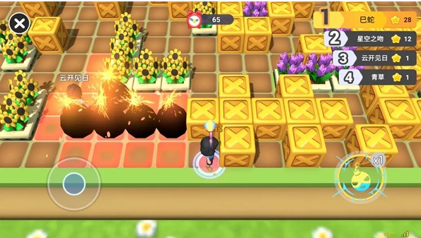 放置炸弹,在周围的箱子中找到能让我们变的更加强大的道具,小心身边的情况,炸弹可以爆破的可不仅仅是箱子。