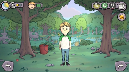 2、当小孩的饥饿值降到一定程度后需要吃饭,刚开始游戏会提供一些食物,时间久了不够吃时不要点外卖,点外卖会要你100金币。这时可以去郊外的河边钓鱼,或者到野外采蓝莓,然后回到家就可以自己做饭。