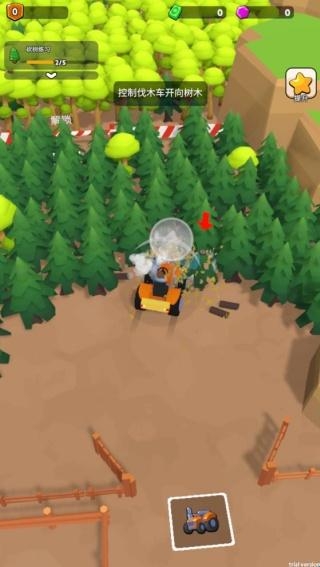 1、驾驶伐木设备前往森林,切割树木收集木材资源,为后续生产与经营积累基础原料。