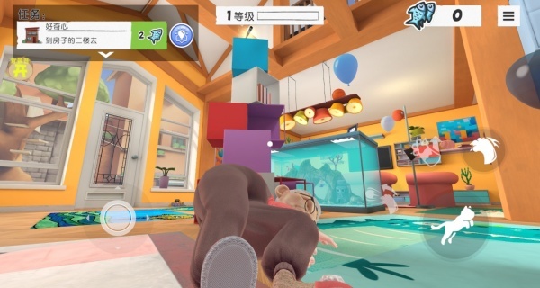2、初始时你的等级是1.利用虚拟摇杆操控着猫咪四处探索和玩耍。