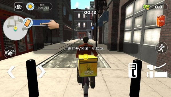 1. 通过重力感应或虚拟按键控制摩托车的行驶方向与速度,在保证送餐速度的同时要注意遵守基本交通规则。