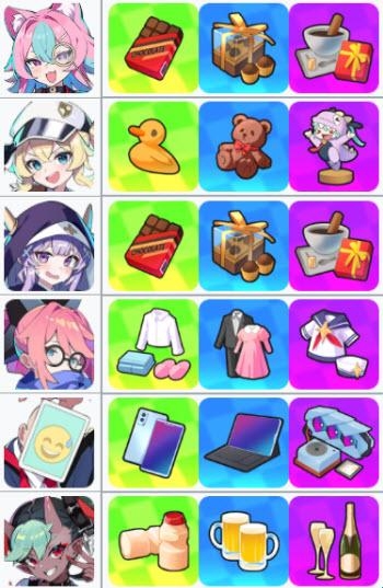 2、角色礼物偏好