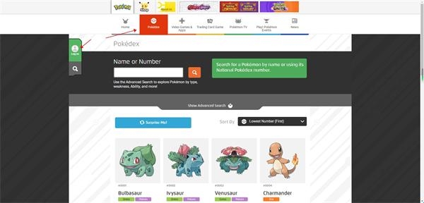 1、需要进入到官方网站,点击Pokemon,再点击Sign Up选项。
