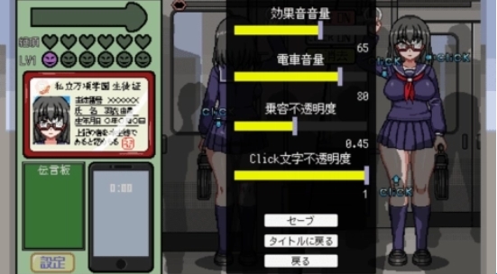 拥挤的电车像素游戏,英文名称作ChikanDensya2,是一款以日本电车为背景的像素模拟游戏,游戏内玩家需要在规定的时间内完成任务,到达下一站女孩会下车任务没完成则表示失败,得重头再来。玩家可以多视角切换,让游戏的可视性更高,你也可以一键去掉乘客,去除眼前的遮挡物,这样观感更好。喜欢的朋友,不要错过。