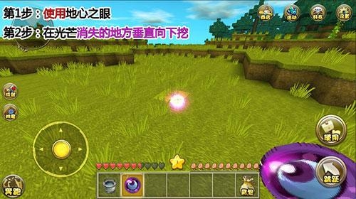 使用后它会探测到地牢(在地心之眼消失的位置垂直向下挖)
