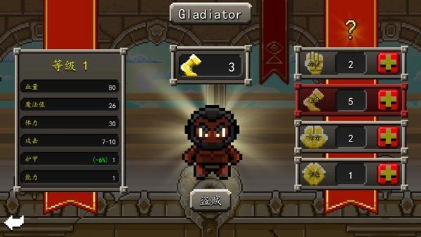 -挑战随机生成关卡,挑战其它类型的角斗士。