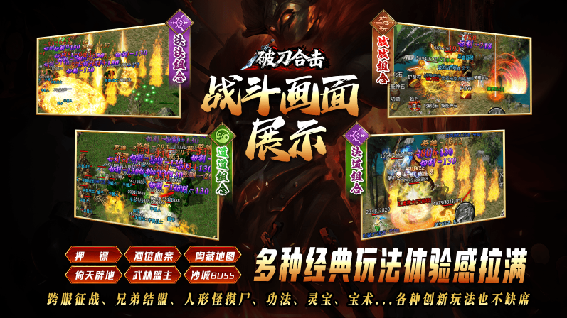 破刀合击游戏是一款主打兄弟协作的热血传奇手游。游戏在原有三职业的基础上,加入了强力的合击技能玩法,让不同职业的玩家通过配合,可以打出炫酷的配合连招,在瞬息万变的战场上玩出不一样的操作,逆袭强大的对手。